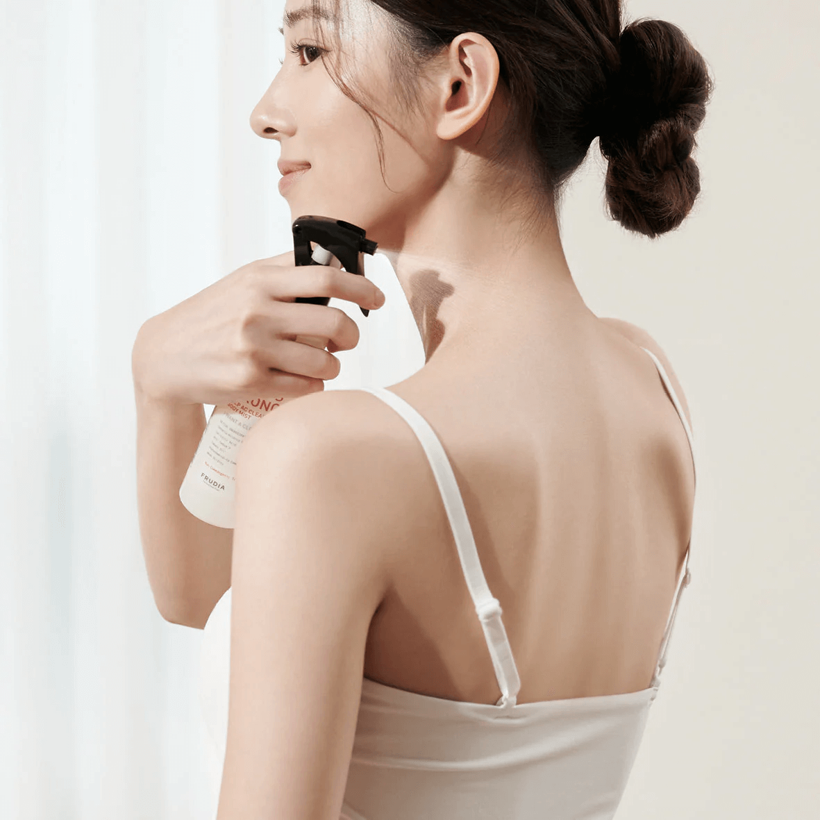 Dopo la detersione, spruzza la mist sulle zone interessate mantenendo una distanza di 15–20 cm.